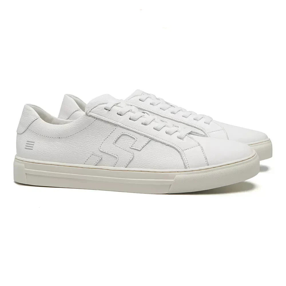 TÊNIS MASCULINO CASUAL EM COURO BRANCO COM CONFORTO - WHITE