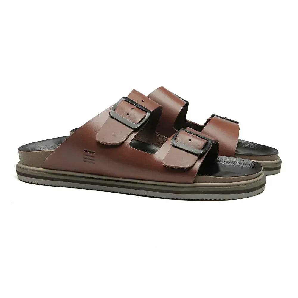 • Sandália masculina em couro natural de qualidade superior• Possui palmilha em couro• Solado de borracha com total aderência para maior conforto• Acabamentos e costuras feitos a mão