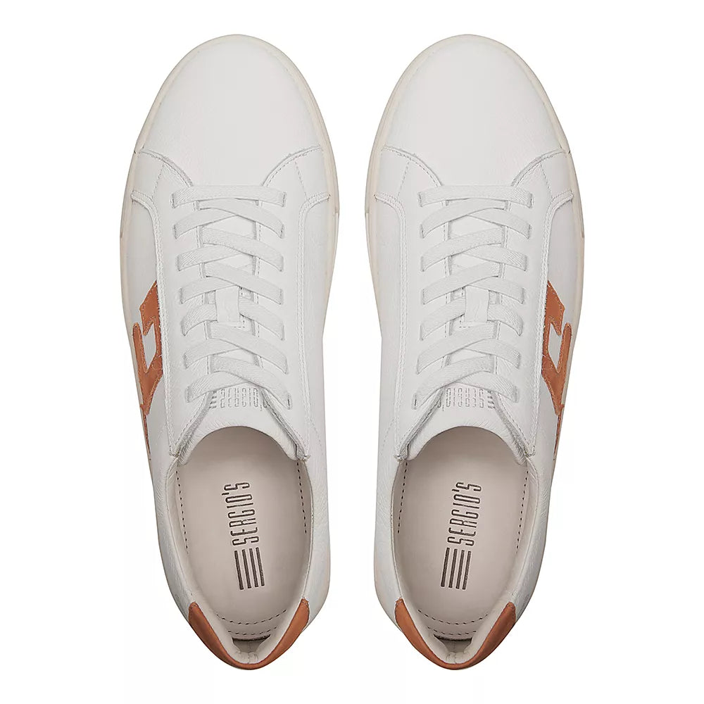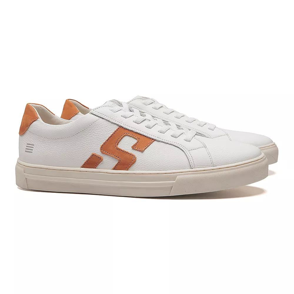 TÊNIS MASCULINO CASUAL EM COURO BRANCO COM CONFORTO - CARAMELO